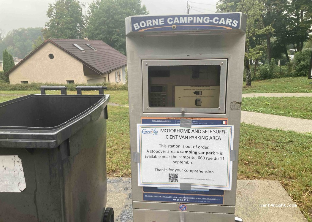 bonjour la borne est arrêté car il y a une aire camping car parc en ville et cette aire pourais être fermée mais non pas encore