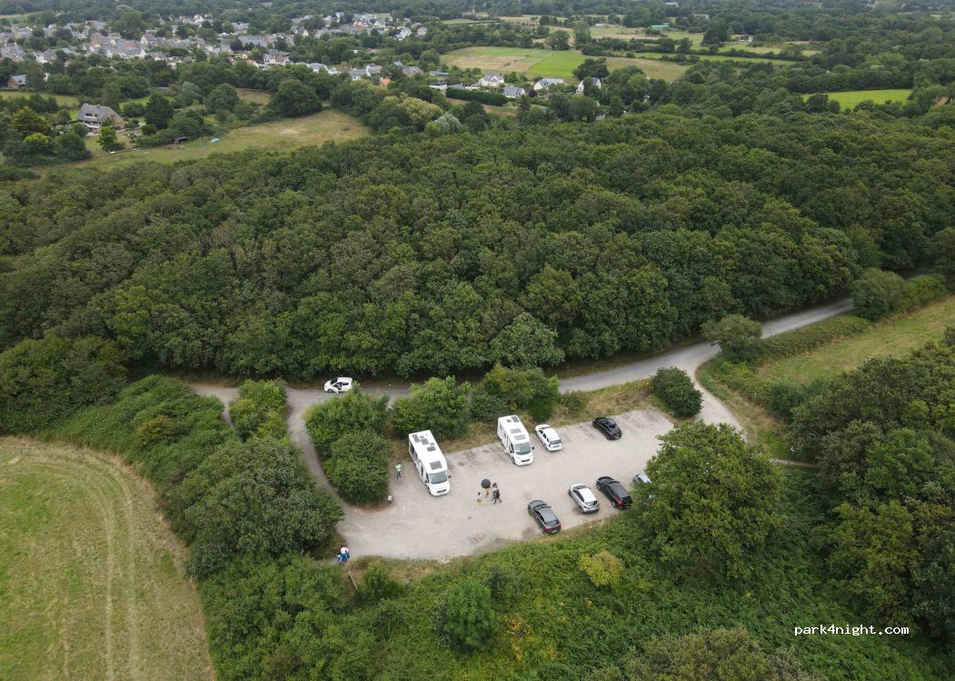 Parking tranquille le soir, ok CC, départ de rando, a 5 mn une vue fabuleuse jusqu'au mont st Michel. entouré de bois. la journée beaucoup de voitures, qui des 19 h partent.