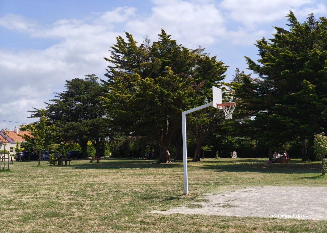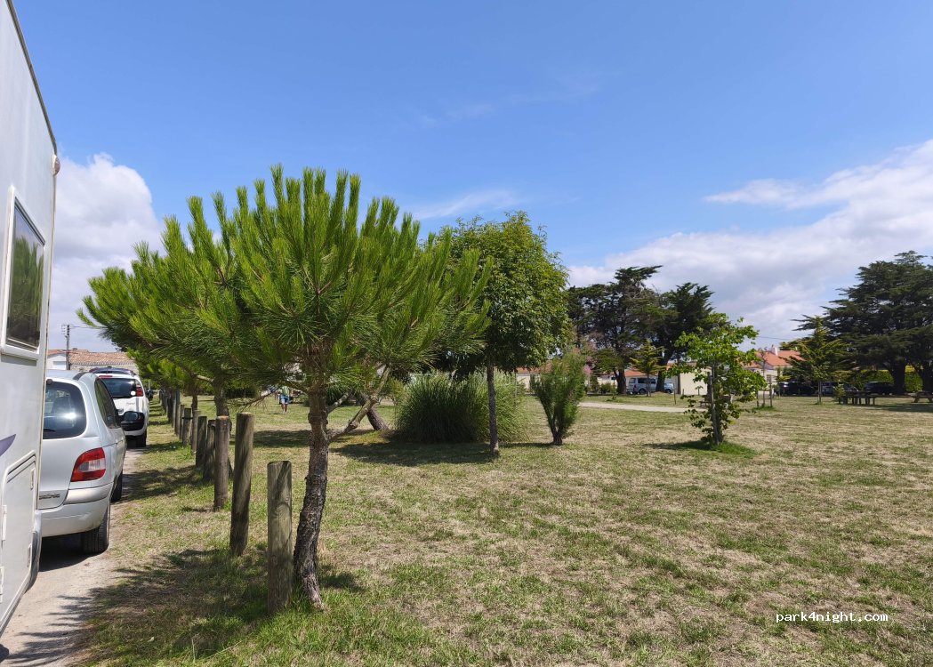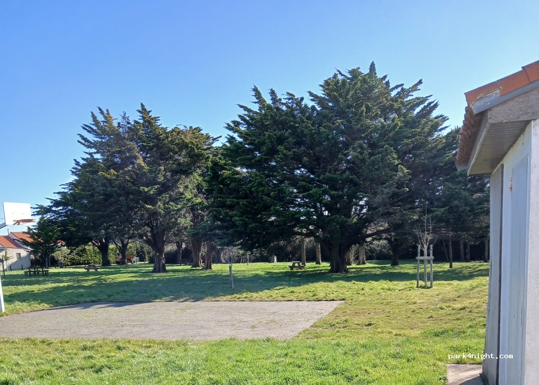 Emplacement pour une pause déjeuner idéal!!! Jeux pour enfants, tables de pique-niques, à côté de la plage. Poubelles sur place. Nous avons un CC de 7m et avons eu une jolie place face au parc.