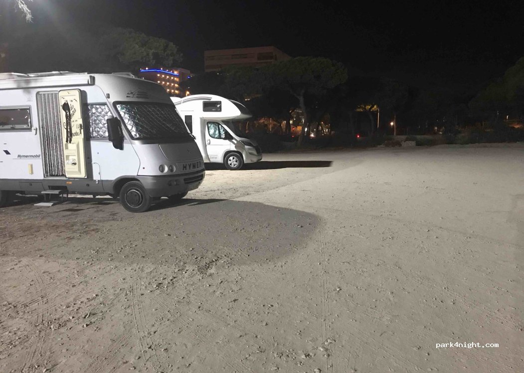 little bit shady but my go to spot in Punta Umbría - I keep coming back here for the weekends and it feels safe but there is lots of noise, people walking their dogs in the middle of the night and sometimes theres a truck that runs all night long. dogs pee and shit everywhere and there's quite some trash. 2€ for 24h and 7€ for a week