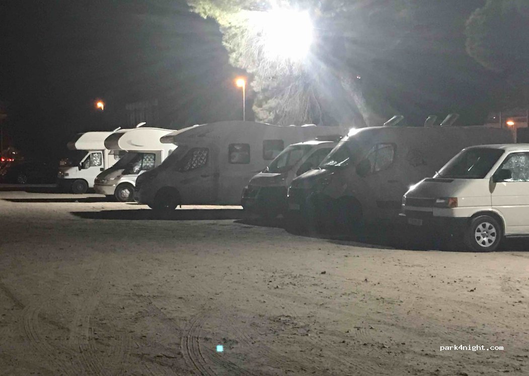 Un aparcamiento de chinos bastante nivelado, es muy tranquilo por la noche aunque depende la hora a la que llegues puede ser que esté completo. Es de pago pero 2€ el día completo. Muy recomendable, tanto para furgos como para autocaravanas. Y el centro y la playa está muy cerca.