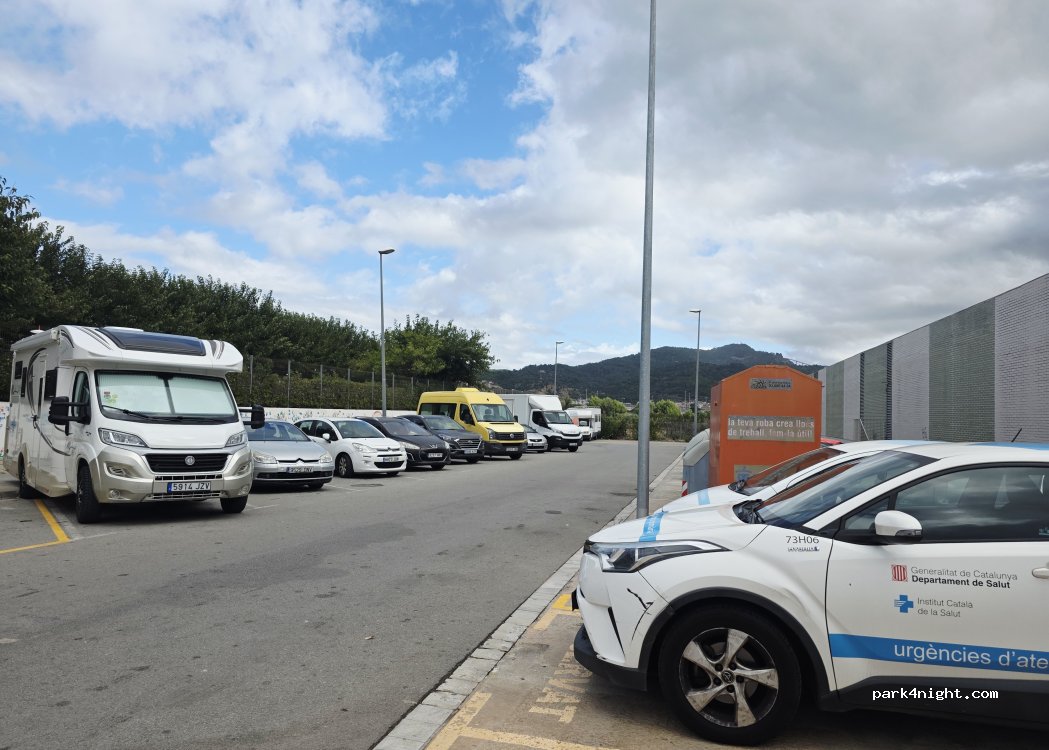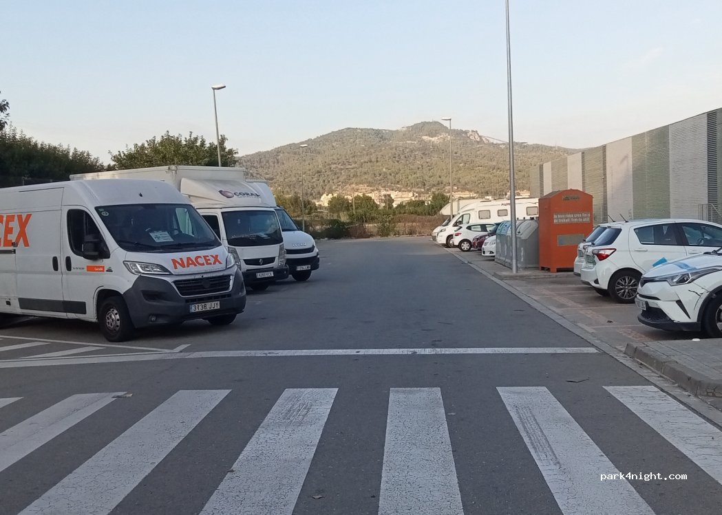 Parking at CAP el Serral, next to the shopping centre and the children's park. Entrance on the side of the underground car park and the Burger King. The place is quiet and safe to spend the night, centrally located, and 10 minutes from the Can Ros station, which takes you to the Montserrat mountain and Barcelona. There is space for a dozen 8-metre motorhomes, and more for camper vans