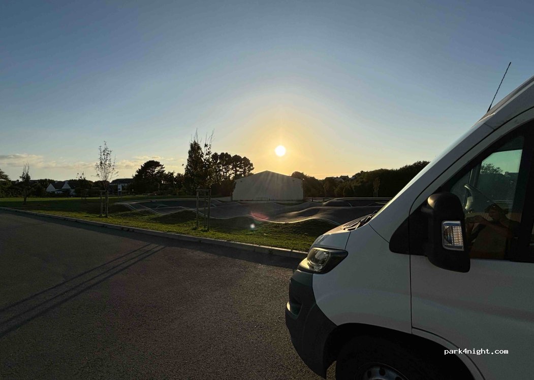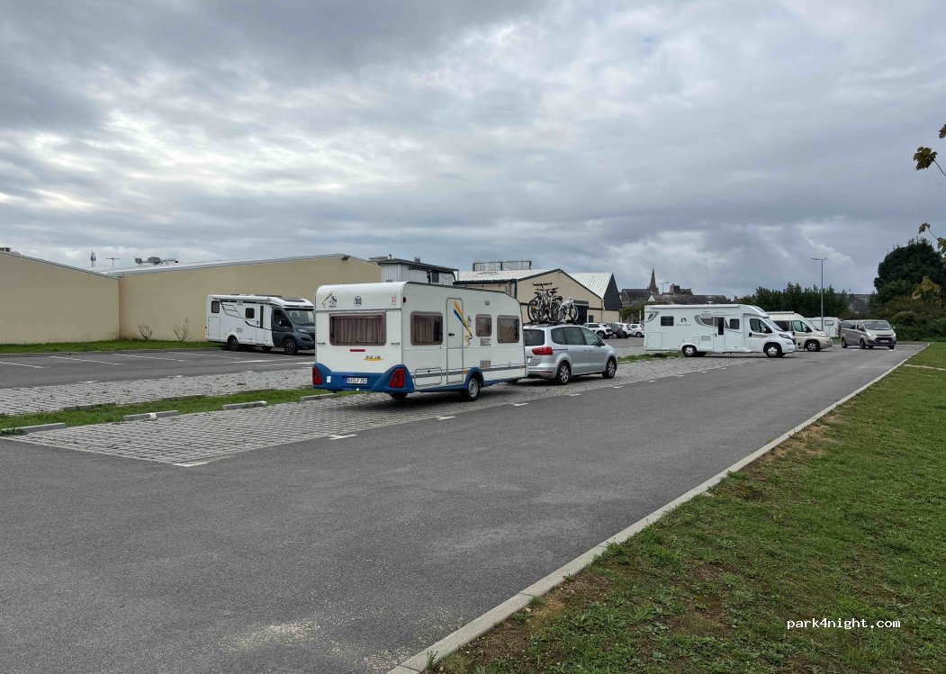 Parking next to Super-U supermarket and gas station, with pump track next door. No services for a quiet night without noise.