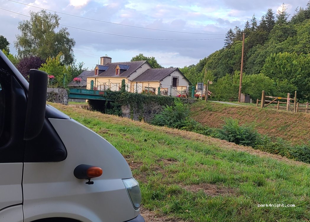 Petit coin tranquille (parking tous véhicules) juste à coté de l'écluse 116 du canal de Nantes à Brest. Chemin de halage à proximité pour balade à pied ou à vélo.