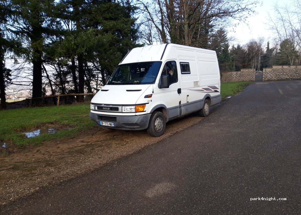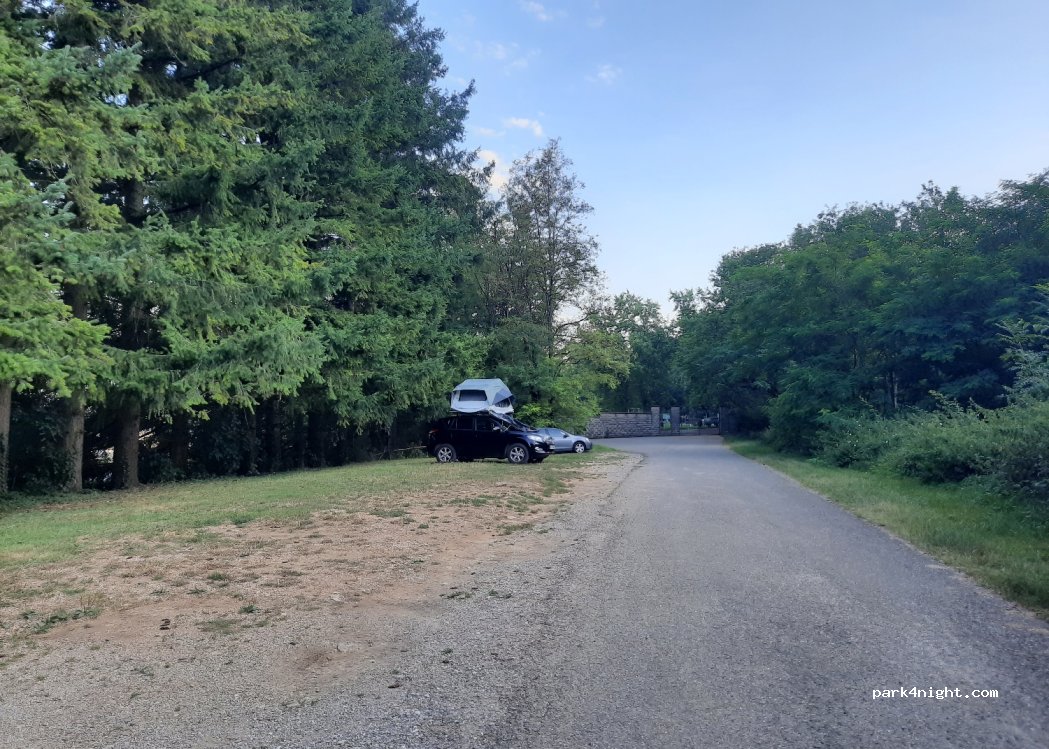 C'est juste le parking du cimetière. en pente. pas de service. nous n'y restons pas pour la nuit.