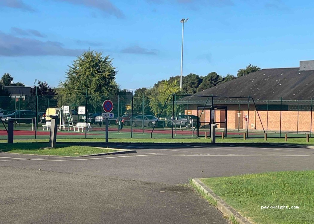Quiet parking in the immediate vicinity of the city. Large parking lot and small parking lot 20m further next to the stadium (tennis, bowling alley, football). Be careful not to park beyond the gravel/grass tennis parking lot because it is closed at night.