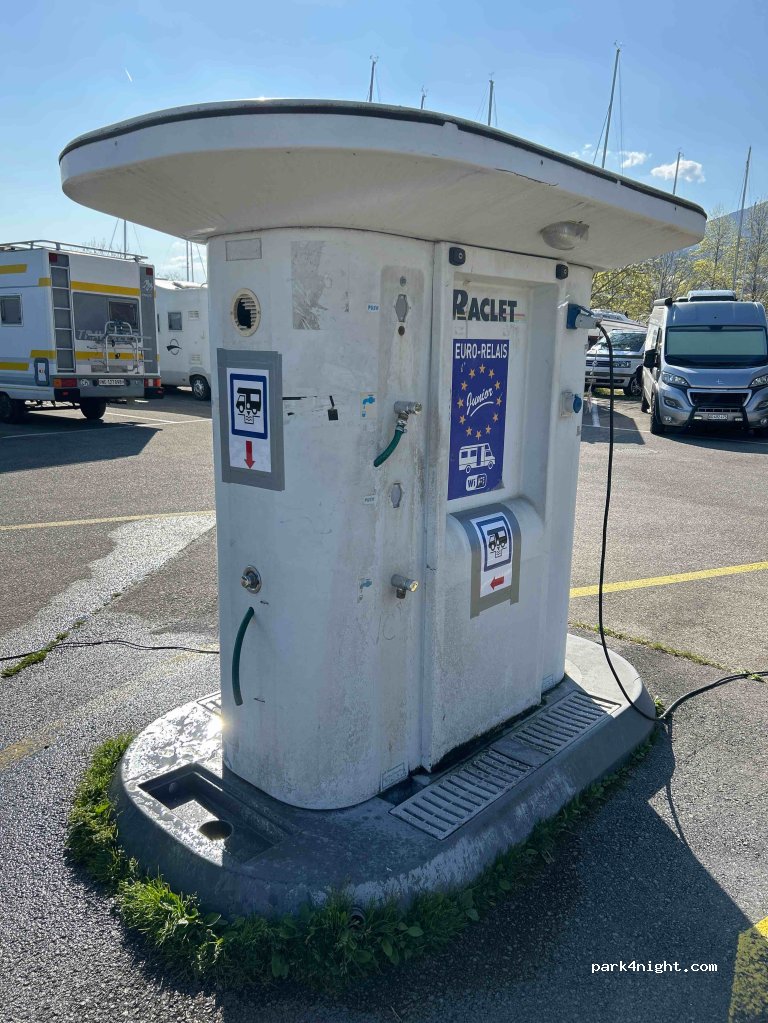 Pratique car proche du lac restauration 4 prises électriques . pour vidé wc ok pour l’eau grise pas pratique le wifi fonctionne. Mais très bruyant car route et chemin de fer très très proche .16 chf