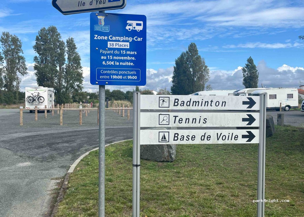 Pas réussi à trouver l’aire qui se situe en pleine zone industrielle. Nous ne sommes pas restés. Passe votre chemin et allez à Bretignolles oú les C-C sont très bien accueillis.