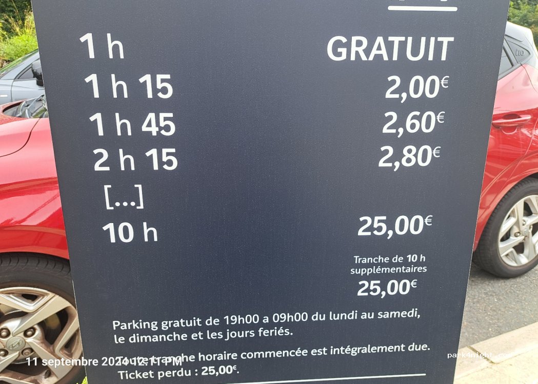 Dumont-Parkplatz. kostenpflichtiges Parken. ein Spiel mit Bar bei 1,90 ohne zeitliche Begrenzung, nachts kostenlos und ein Spiel ohne Höhenbeschränkung, aber begrenzte Zeit, kostenlos nach 19 Uhr. Kein Nacht- oder Wohnmobilverbot. neben der Rer-B-Station Aulnay-sous-Bois. Aufgrund von Arbeiten sind die Markttage Dienstag, Donnerstag und Sonntag vormittags bis 15 Uhr geschlossen. nicht für große Fahrzeuge geeignet.