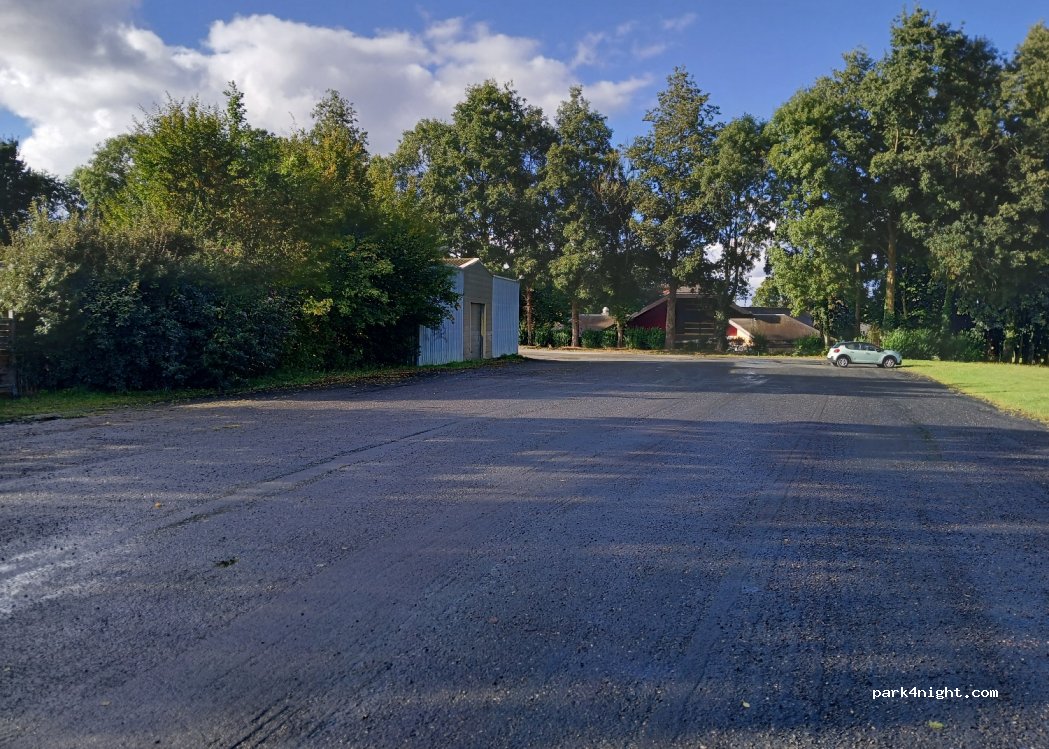Parking located near the Plélo bowling alley. Bakery and shops 2 minutes walk away. No services.