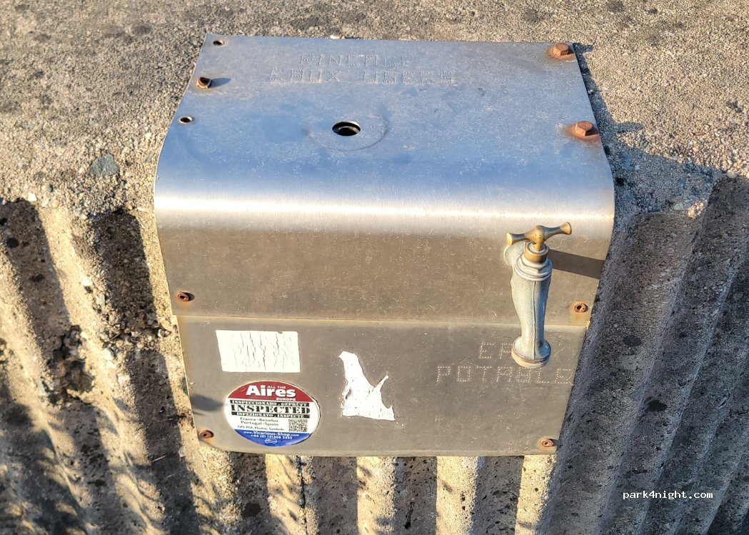 Aire de vidange mais sans eau pour nettoyer. Le robinet d'eau potable est sec.