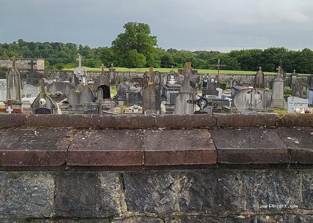 En realidad no aparcamos aquí, pero hay espacio para uno o dos campistas al lado del cementerio. Es un lugar muy tranquilo con hermosas vistas; realmente nos hubiera gustado quedarnos a pasar la noche.