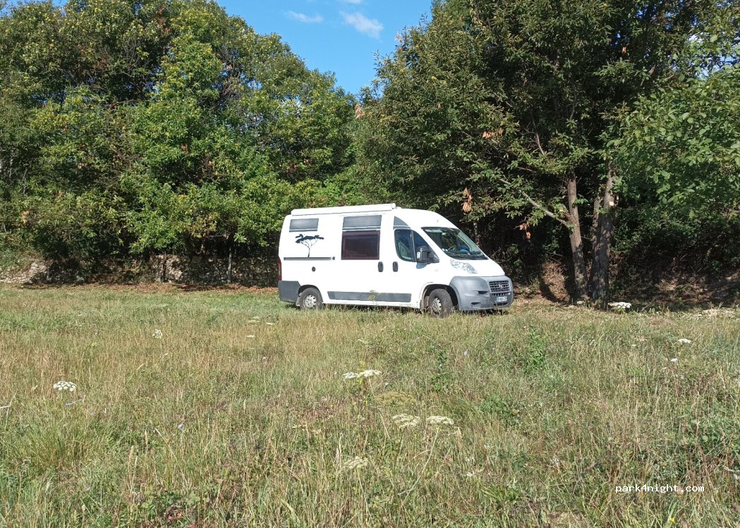 If you don't want to stay on the roadside: free accommodation on a private property, for 1 to 2 days in the sun or in the shade of chestnut trees. Several possible locations, accessible to medium-sized vehicles (maximum: length 6m, height 2.50m, 3.5 tonnes).