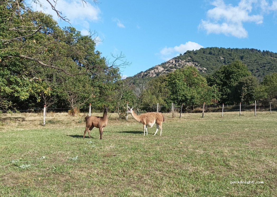 Un coin bien tranquille, accessible par une petite piste d'une certaine de mètres, réservée aux véhicules légers. A proximité : des lamas sympas, pacifiques et curieux. Leur propriétaire nous les a présentés ; vous pouvez vous adresser à l'accueil pour demander à accéder aux toilettes ou à se garer à d'autres emplacements !