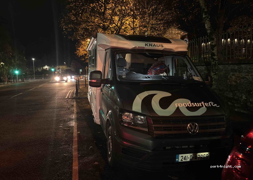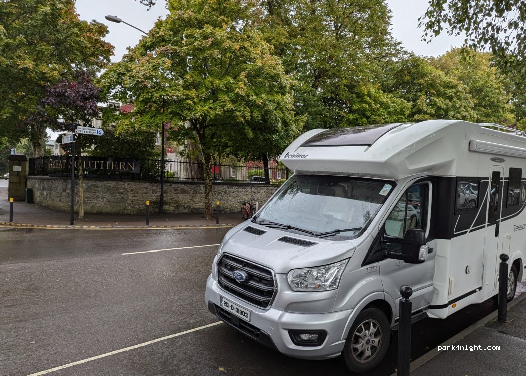 Stationnement gratuit dans la rue après 18h juste en face du Great Southern Hotel. Endroit idéal si vous souhaitez faire la tournée des pubs dans la célèbre ville de Killarney. Un peu bruyant mais ça vaut le coup pour une soirée sympa.