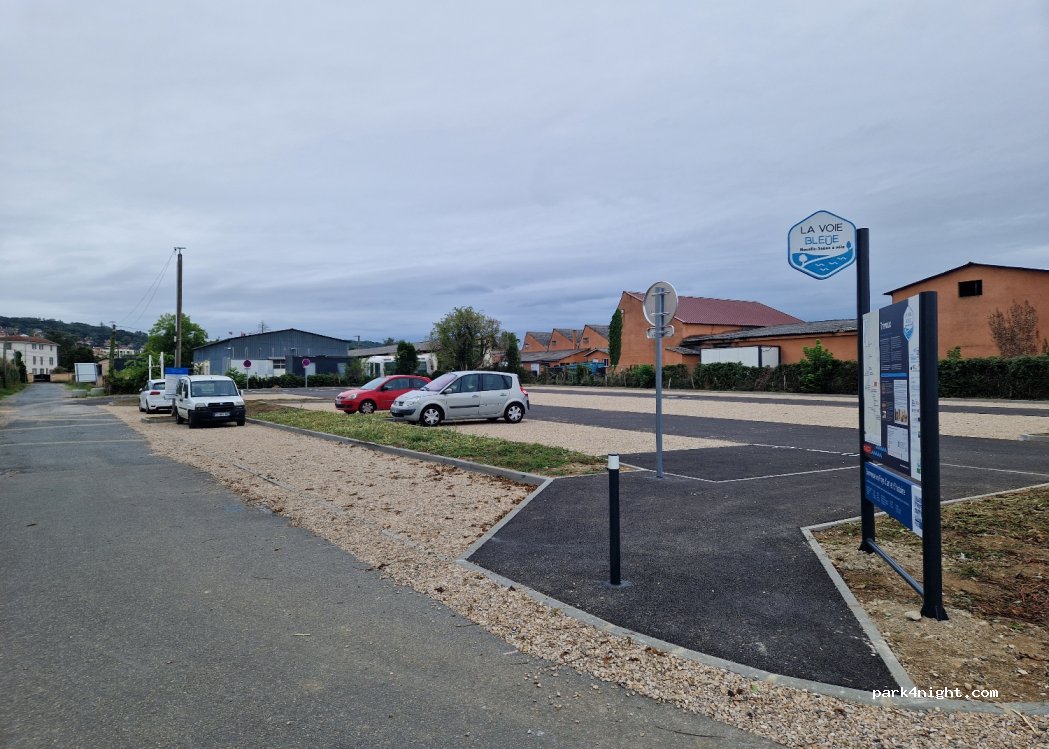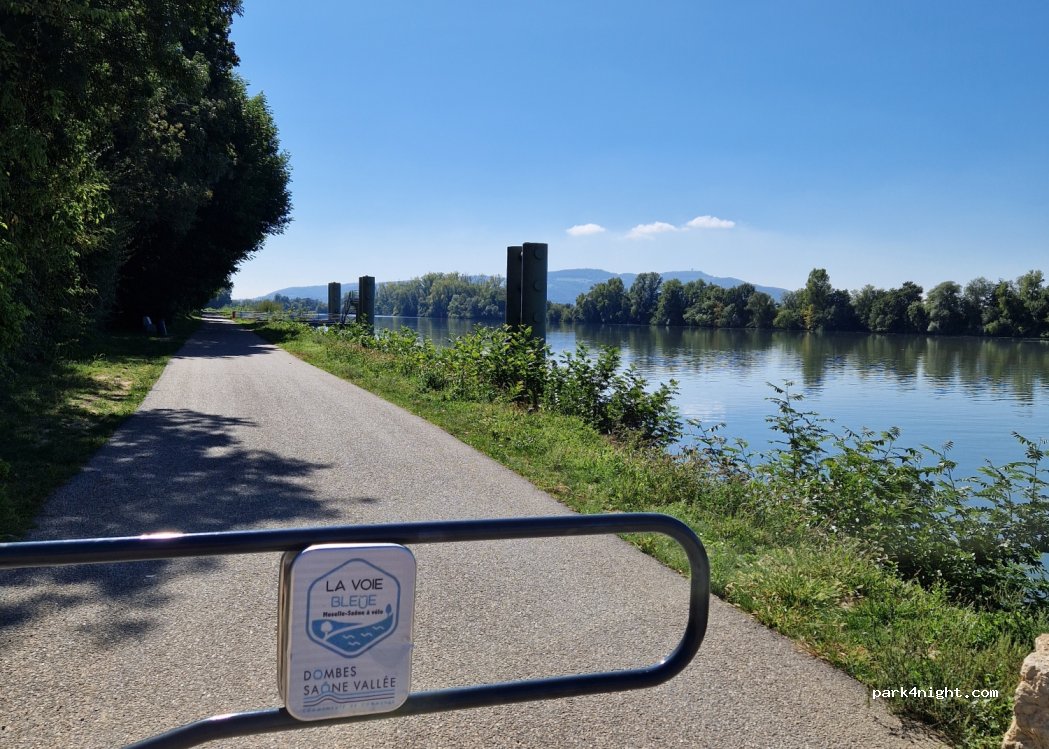 Il s'agit d'un nouveau parking récemment construit. Il y a des places de parking à l'intérieur d'une zone limitée à 2.10m pour voitures et petits vans. Il y a également 3 places sur le côté où il n'y a pas de limite de taille. aucun panneau actuellement interdisant d'y rester. merci de laisser cet endroit propre et calme pour en profiter. Sur place un vendeur et réparateur de vélo vous permet de faire des balades le long des bords de Saône en vélo. Pas très loin du centre-ville de Trévoux pour visiter à pied. Rangement pour vélo.