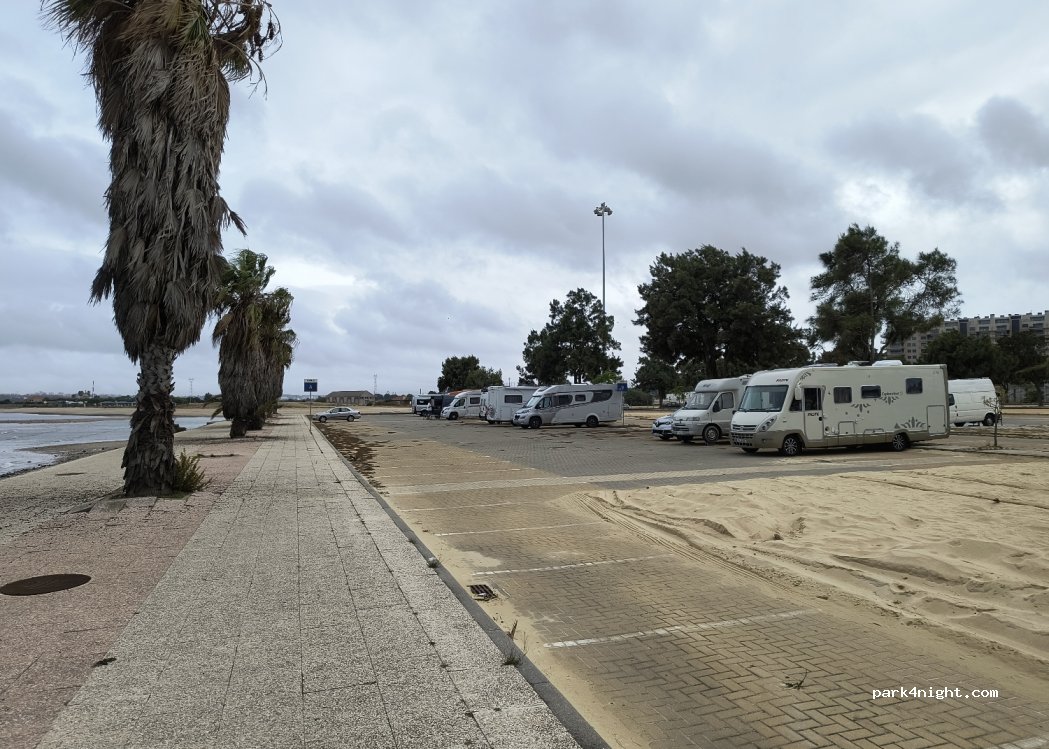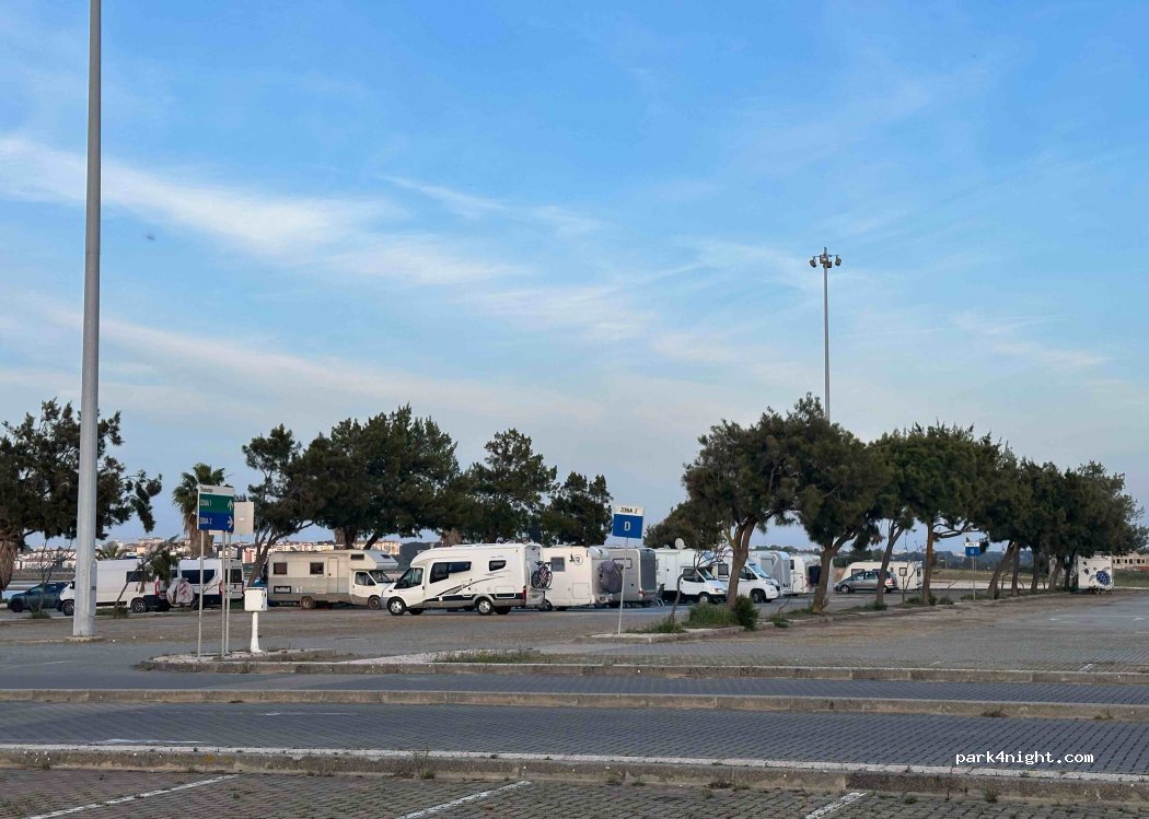 A free car park where motorhomes are welcome ( sadly no facilities ) to stay. Great place to catch the ferry across the Tagus and into Lisbon. We stayed 2 nights. Would use again. Sadly closed between June 9th and 32st August.