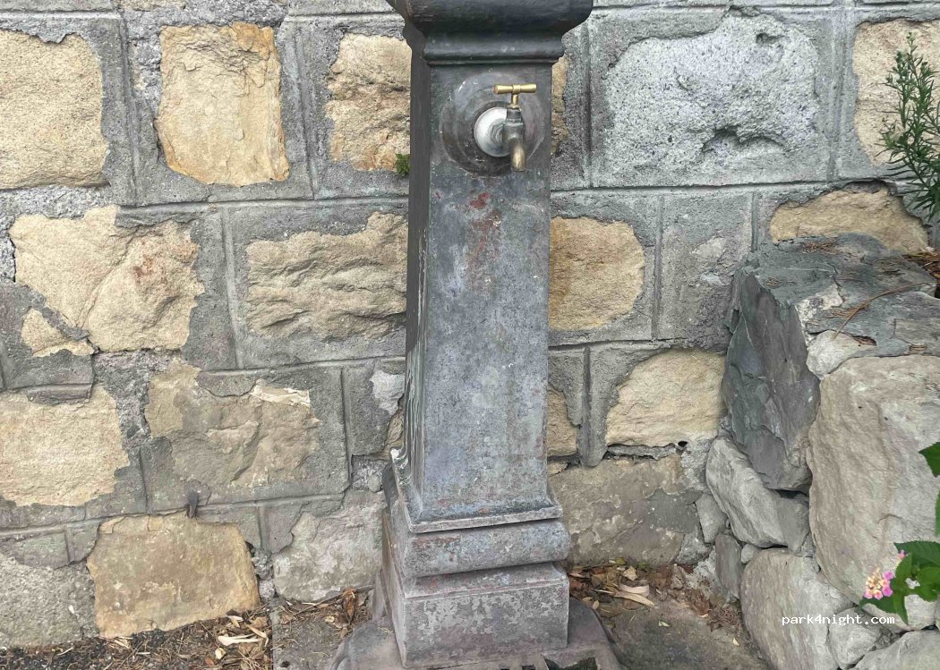 Several parking spaces along the road with water point nearby and the belvedere opposite. A little noisy during the night given the passage of cars. We spent one night there.