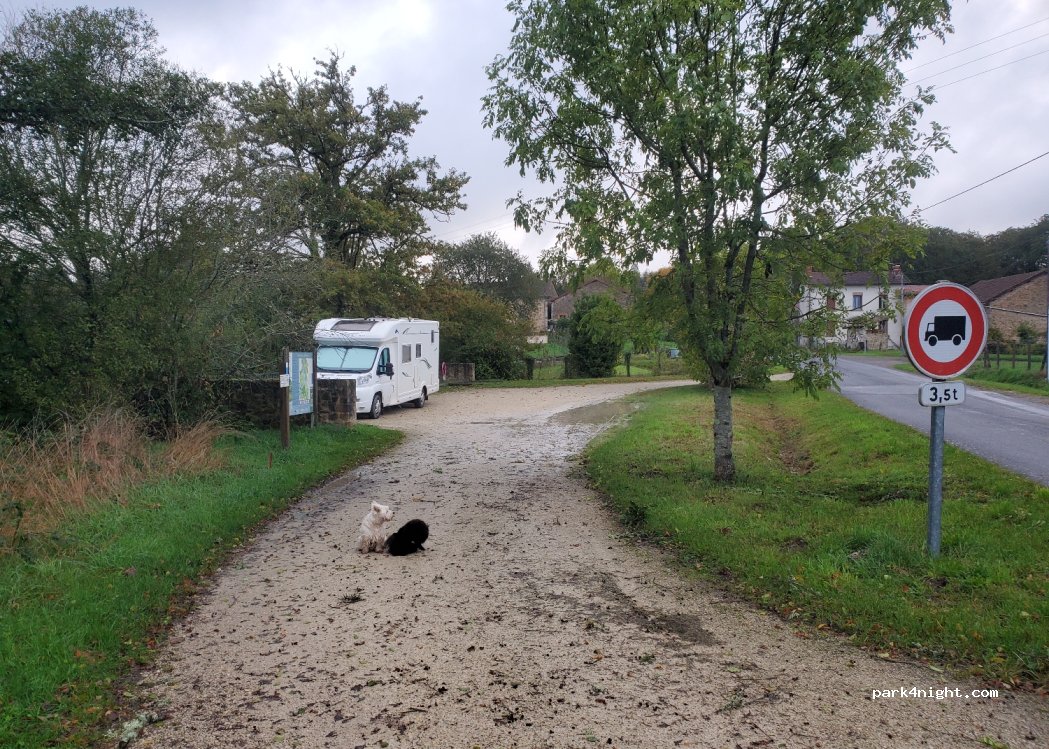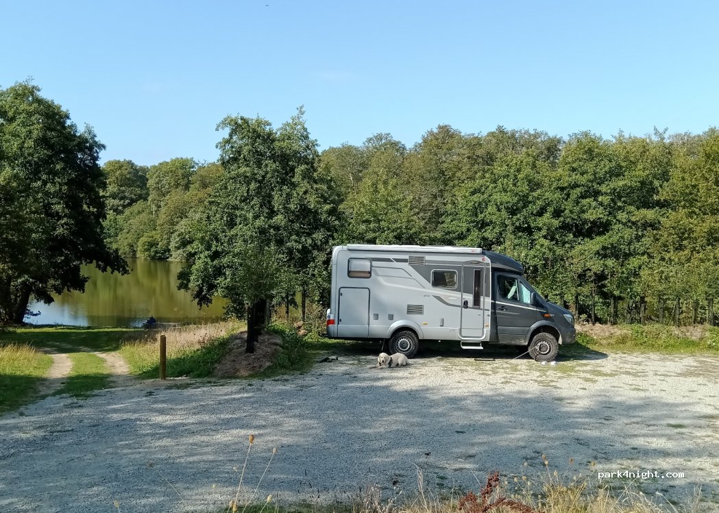 Petit parking à côté d'un étang. pour 2 ou 3 camping cars. route proche mais peu passante