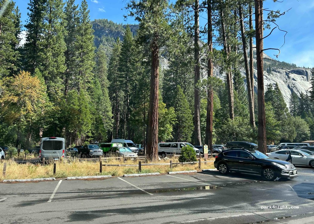Day parking at the Yosemite Village Welcome Center. There are extra RV parking spaces