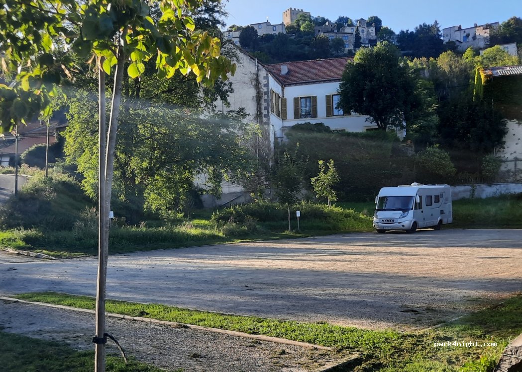 Parking de jour comme de nuit , nous avons passé une nuit et garé la journée sans problème. Le parking se situe après la pente à gauche, à côté du terrain de foot.