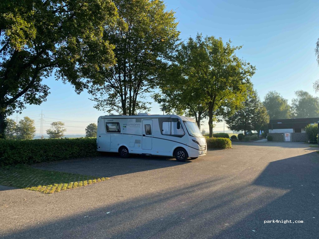 Parking très calme pour une nuit. Restaurant juste à côté avec un excellent rôti d'oignons (n'hésitez pas à l'essayer !). Il pourrait y avoir des événements certains week-ends, donc ce sera probablement un peu plus bruyant. Pour nous, c'était parfait.
