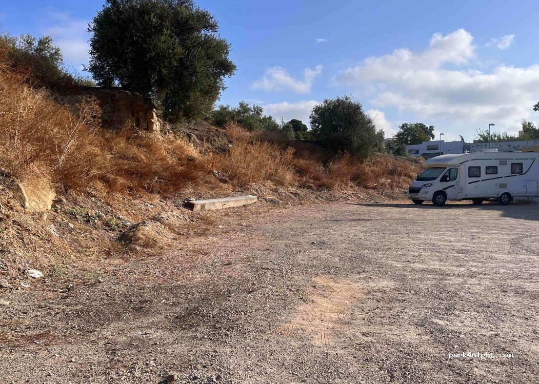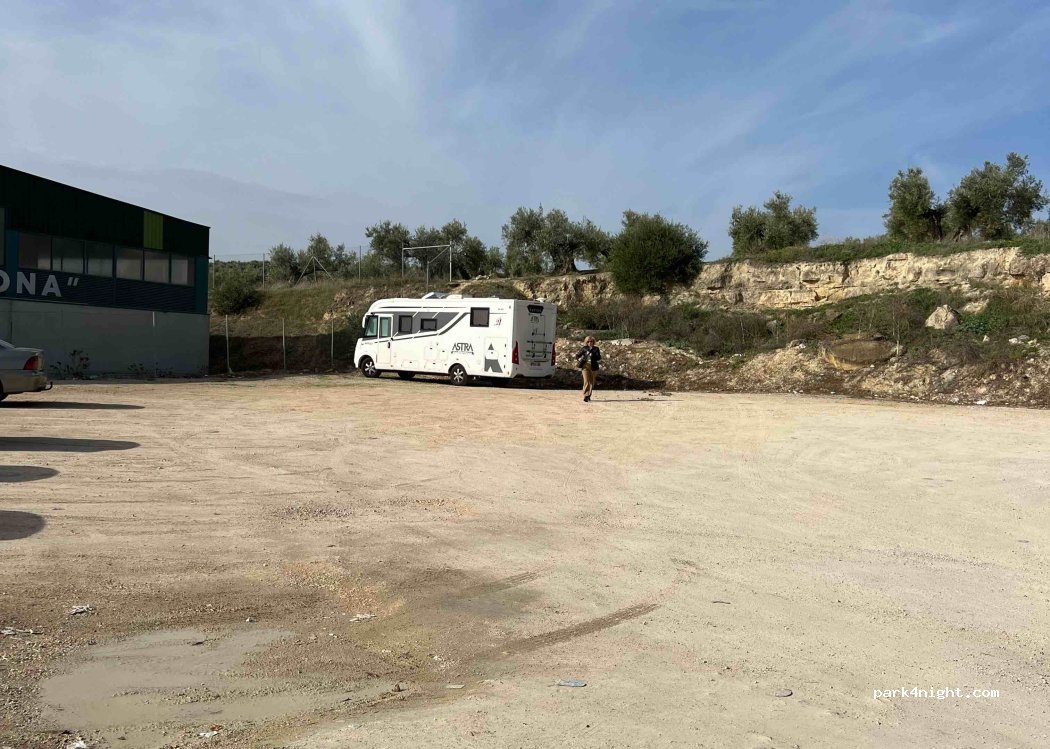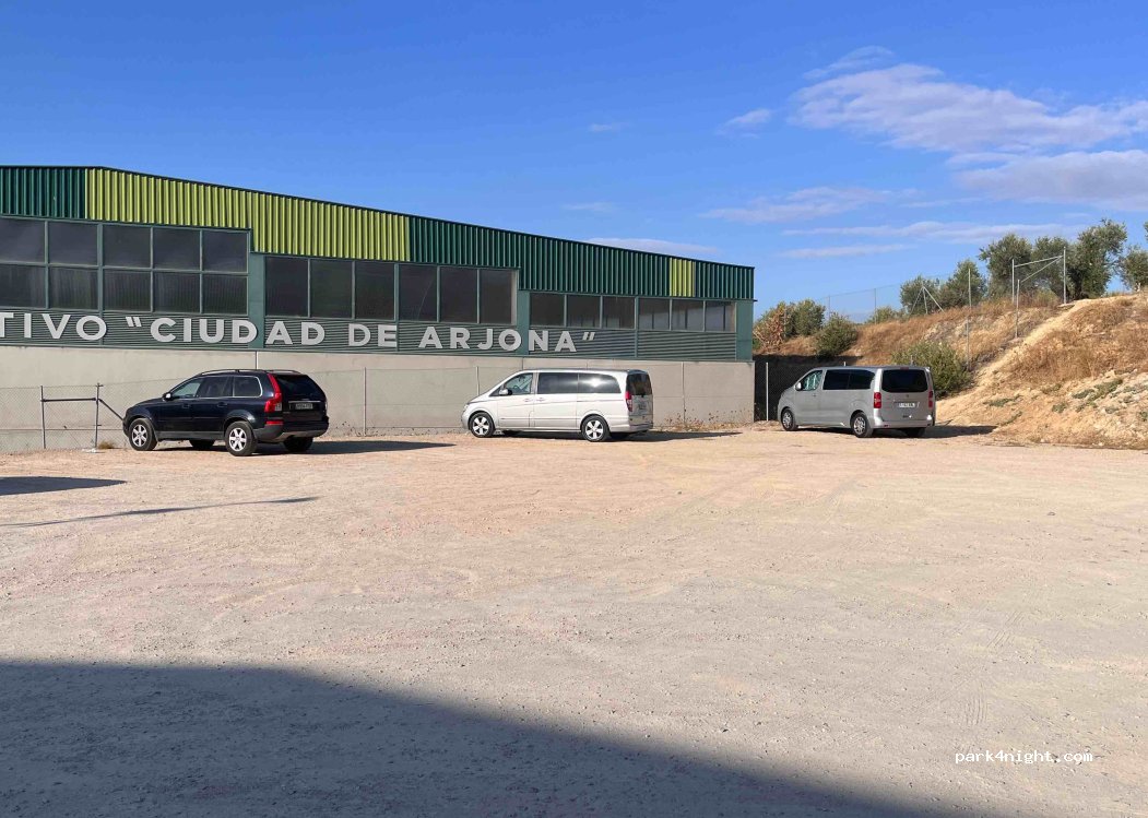Large quiet place to spend the night next to the sports complex near the hotel with bar, without shadows, level. Ideal for motorhomes.