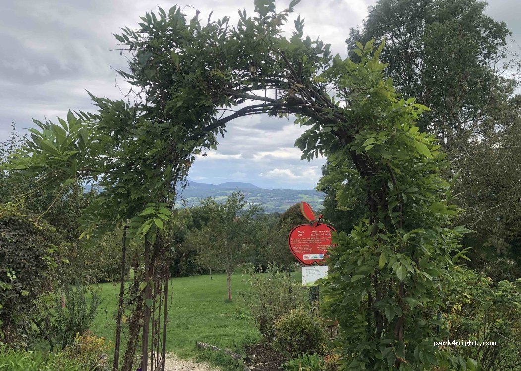 Charly ist ein idyllisches Dorf, und vom Parkplatz gab es einen sehr schönen Blick bis in die Alpen. Unseren morgendlichen Cappuccino genossen wir auf der Bank hinter dem Parkplatz.
