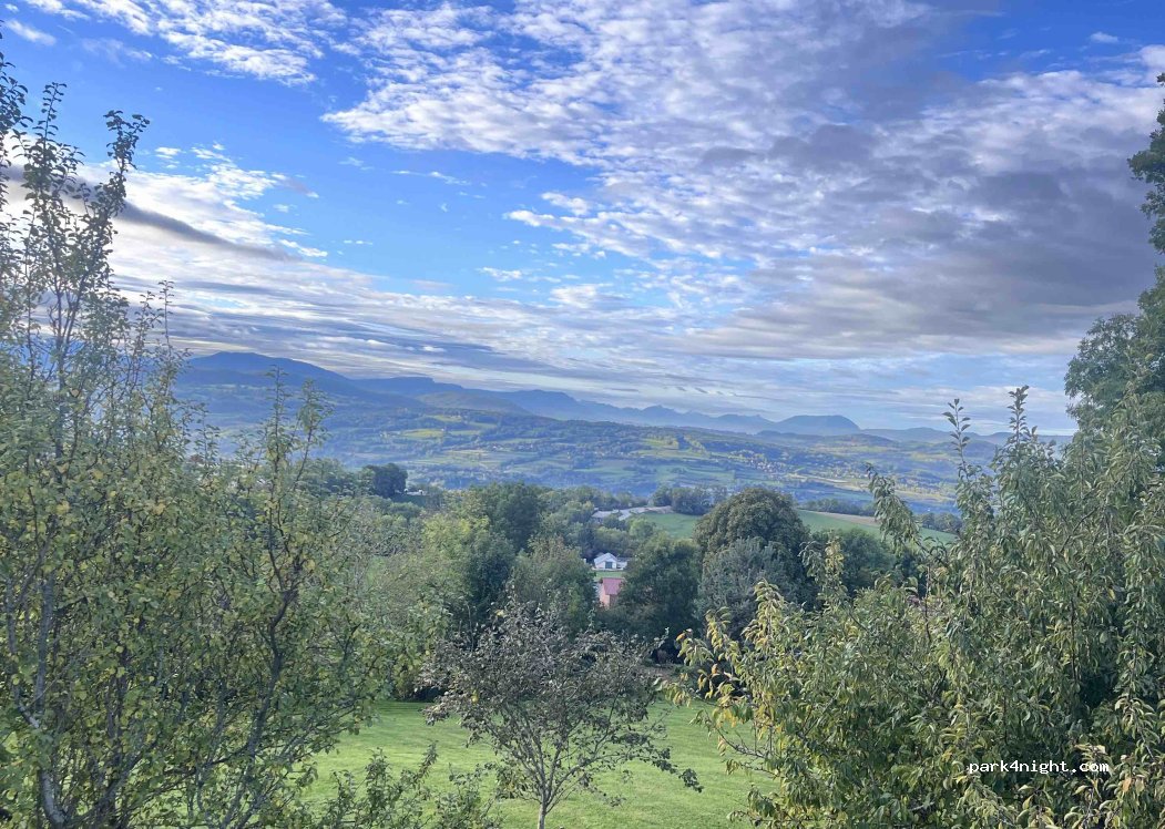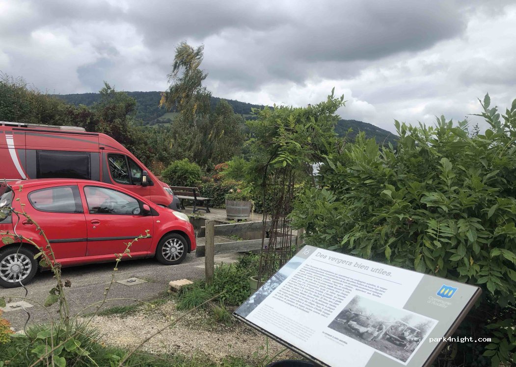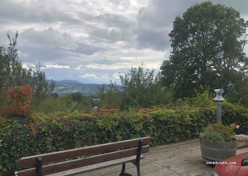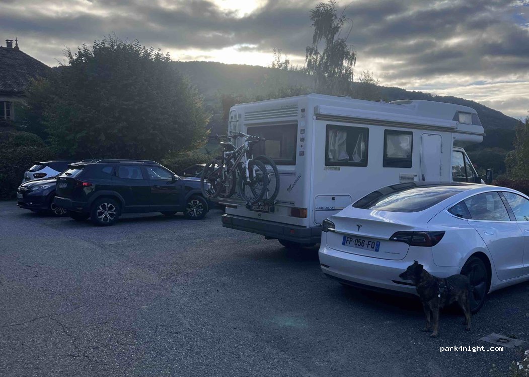 Espace pour trois camping-cars avec une belle vue sur la vallée.