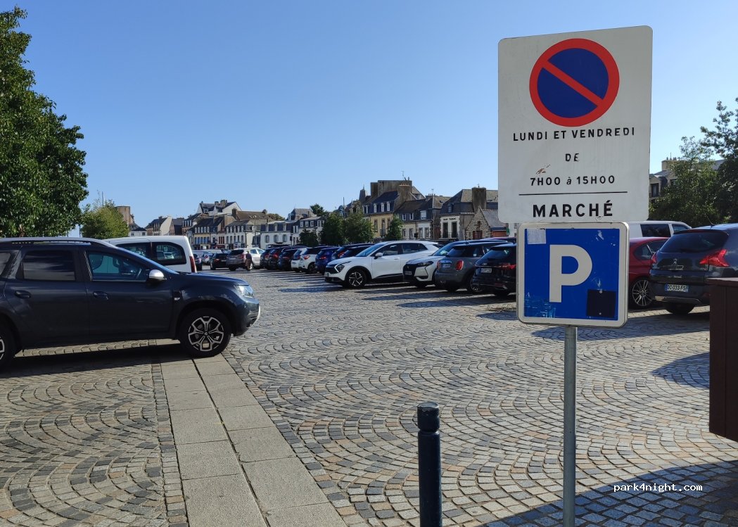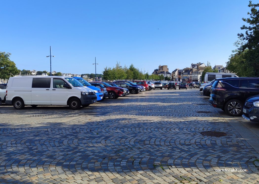 Stationnement payant, stationnement interdit les lundis et vendredis. Juste devant l'entrée de la Ville Close de Concarneau.