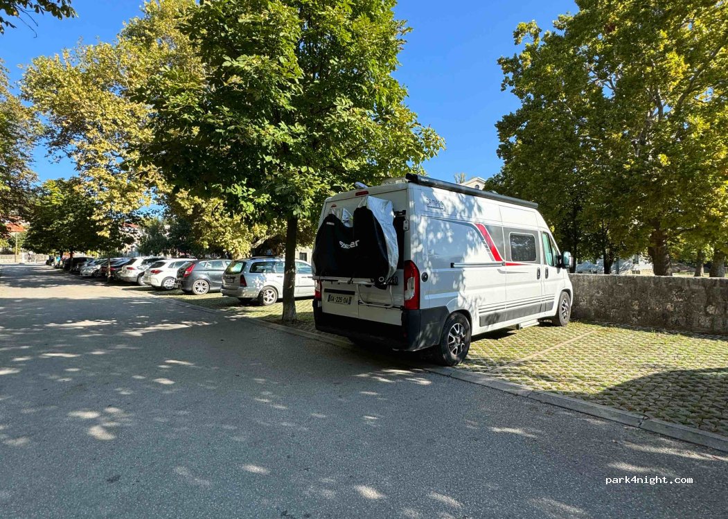 Quiet parking near the city center of Sinj. The locals did not say anything to us and did not seem surprised. We do not recommend for vehicles over 6m, the spaces are short. Hiking departures. Free on weekends.