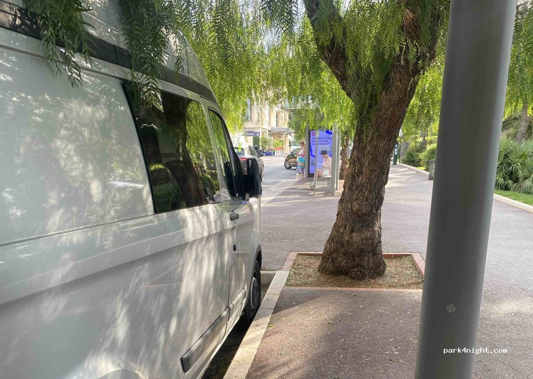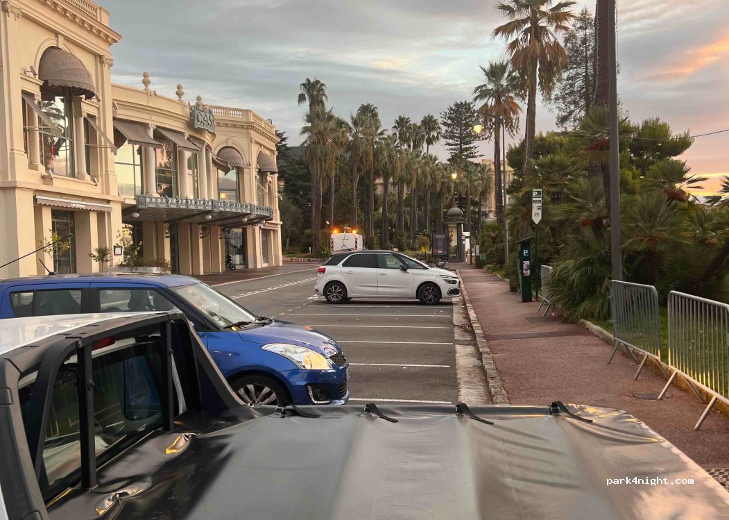 Bel endroit pour une nuit ou un petit déjeuner à côté du cap Ferat avec vue sur la mer - toutes les hauteurs sont correctes ! Accès à la plage avec vidéosurveillance 24h/24. Parking en journée tout à fait correct. A côté de la route et un peu bruyant.