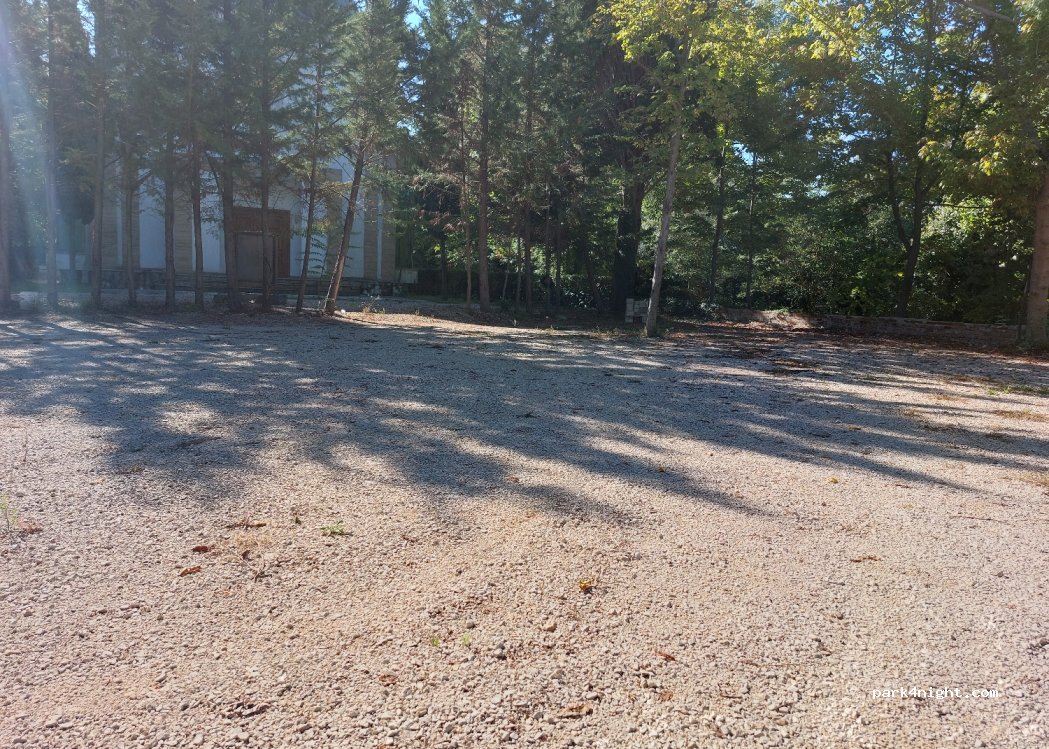 Grand parking du restaurant, facilement accessible pour camping car(8m). A 10 minutes en vélo du centre de Tirana. C’est aussi le parking du mausolée de la famille royale albanaise. On se sent en sécurité. Accueil sympathique du personnel. Paye 10 euros pour 24h00. C’est un îlot de fraîcheur en ville. À recommander.