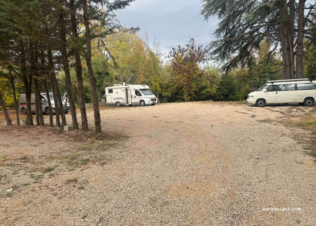 Parking appartenant au restaurant d’a côté (régler le stationnement la bas). 5 euros en journée ou 10 euros la journée et la nuit. Pas de services. Il faut marcher un peu pour visiter la ville et peut être un peu bruyant si vous restez la nuit.