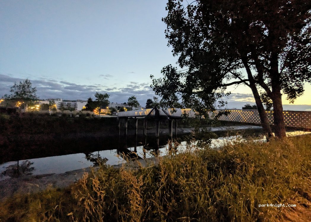 The Landerneau motorhome area is located in a former campsite 10 min walk from the town centre. It is made up of a parking area and a service area for passing users. The setting is green, the parking area has 25 very large individual spaces (>60 m²) with electrical outlets.