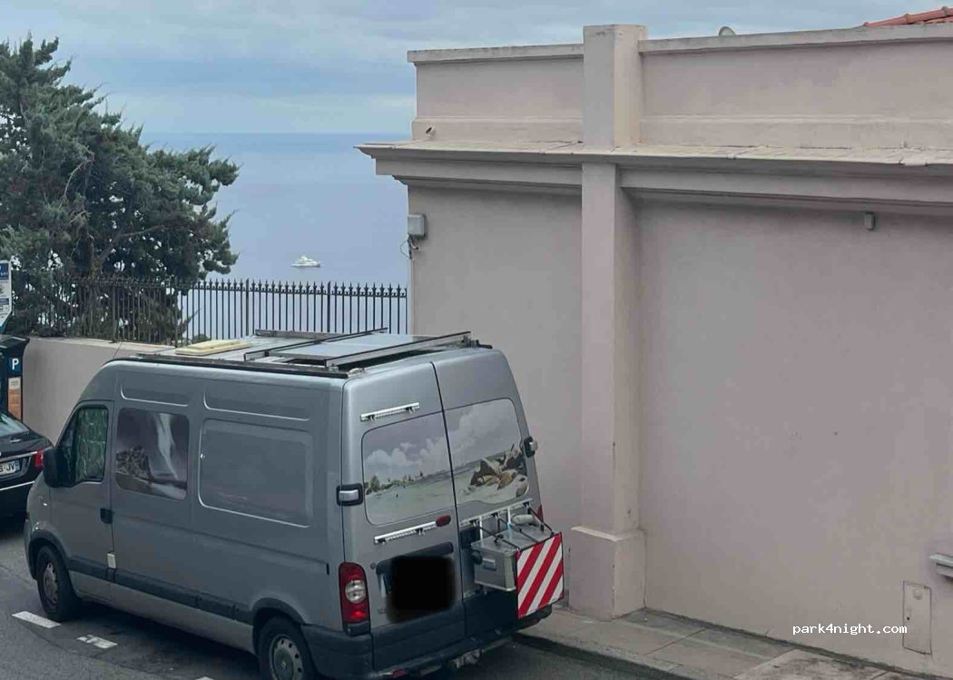 Parken entlang der Straße im Stadtteil Beausoleil. Bezahlt wird nur zwischen 8:30 und 12:30 Uhr und nochmals zwischen 14:00 und 18:30 Uhr. Über Monacos Treppen- und Aufzugssystem gelangt man in ca. 15 Minuten ins Zentrum. Vom Parkplatz aus hat man einen tollen Blick auf das Meer und Monaco. Für eine Nacht oder einen Tagesausflug ok. Es ist laut und steil, aber das ist hier überall so.
