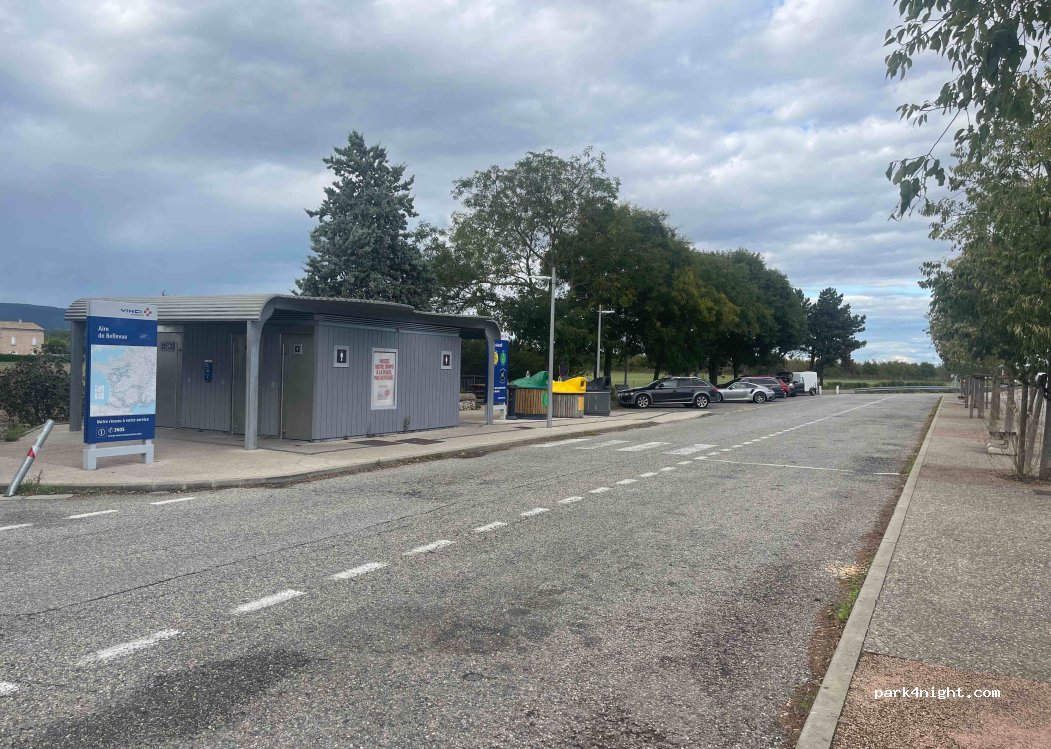 Aire de repos de l’autoroute Bellevue. Espace pour camions et autres véhicules. Bancs, table de pique-nique, recyclage.