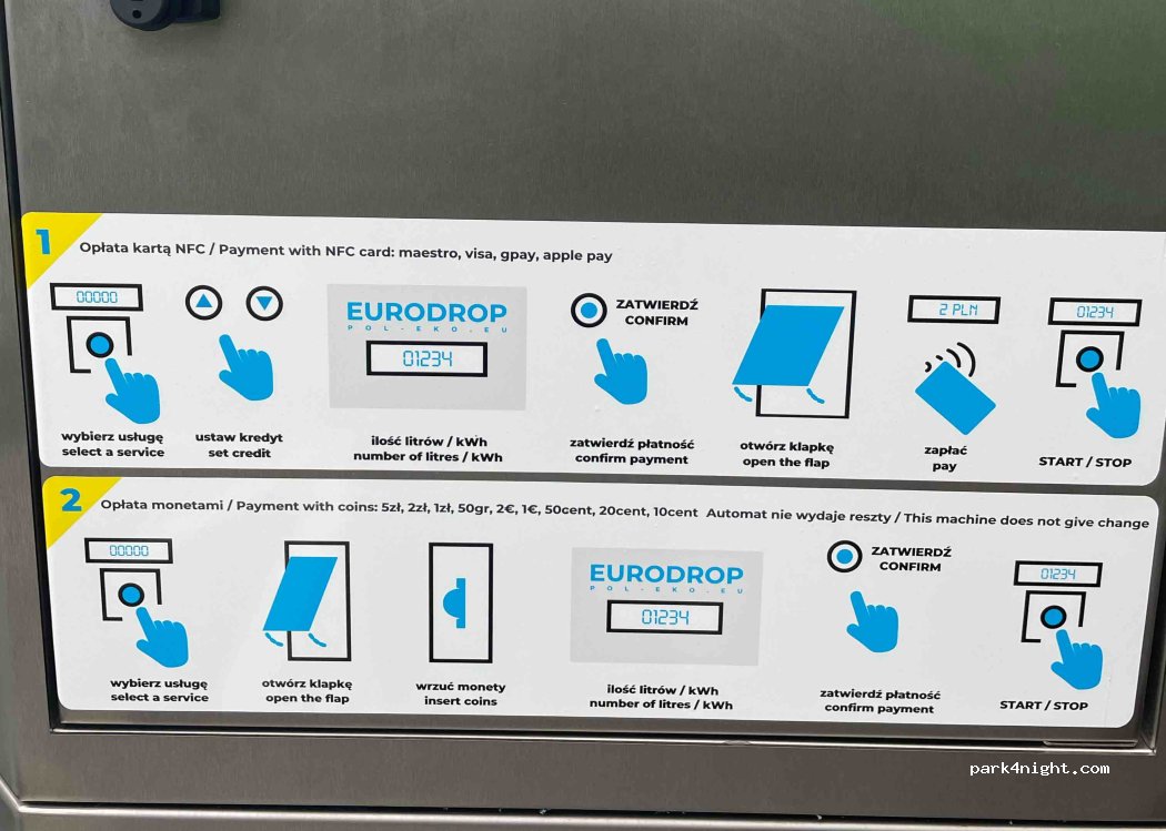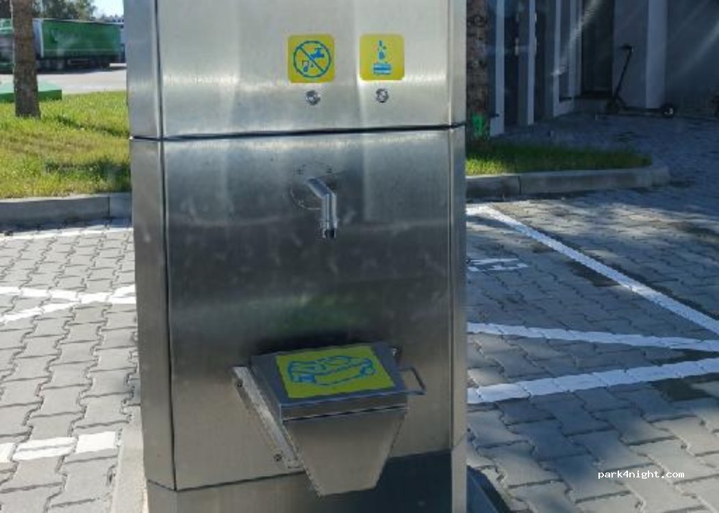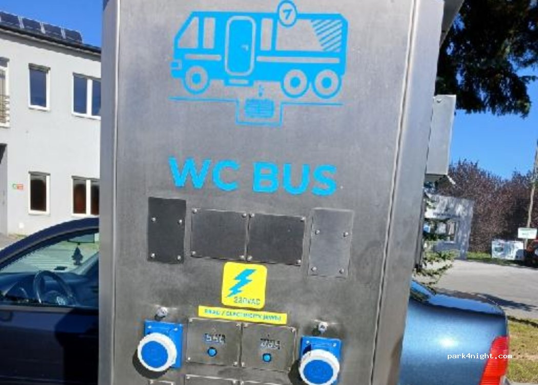 It works, is fairly new and clean. However a truck-trailer was parked on the service place, making it impossible to dump grey water and almost impossible to use the WC BUS module. But if you’re in a deep s… there are regular toilets right next to it, open and free. The bus services on the other hand are not all free. You can pay in cash (pln or euro) or by nfc BUT you don’t see the clear price table (at least when you pay in cash). So as a starting point, it’s a game of guessing. We needed only drinking water, it was 1,50 pln per 40 litres. WC bus service is free (it would probably be a bad idea for the service to be paid right next to free toilets). If someone’s considering sleeping somewhere near, it may be possible but there are a lot of trucks, as we were here on a holiday it was just crowded but quiet, but on a regular day I can imagine a lot of truck noises. It’s better to go to the nearest Cementary Parking, it’s like 1,5km away, nicely preserved (propably renovated not so long ago), quiet and slighlty lighted so it’s a good parking spot if you have a dog.