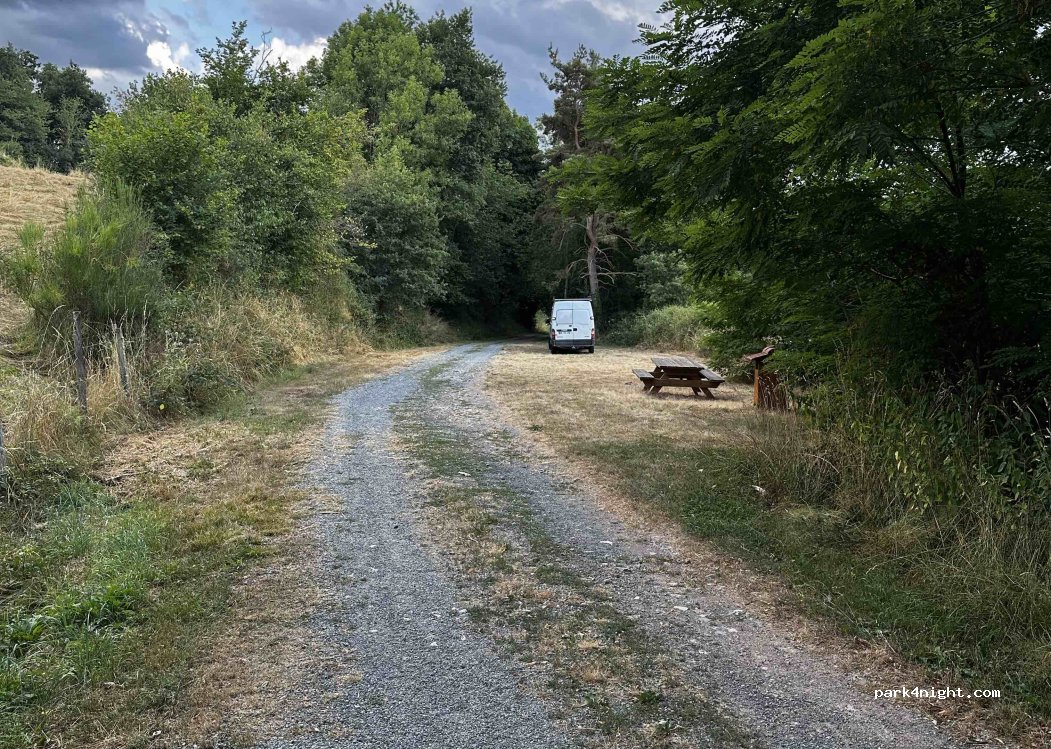 Magnifique spot, plat, à côté du très beau village de Juré et du viaduc. Je suis arrivée par le viaduc mais c'est peut-être mieux d'arriver de l'autre côté pour les camping-car. Nous étions 2 sur l'air de pique-nique en mai. Je pense qu'il est aussi possible de stationner dans le village au niveau de la zone de loisirs, plusieurs emplacements à côté du stade de foot, aucune interdiction visible
