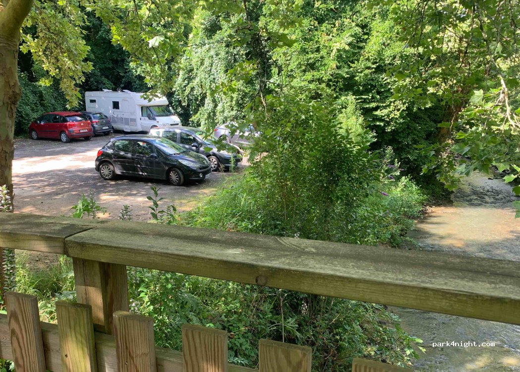 Très bien. Calme, discret et à 2 pas du centre-ville et de la charcuterie incroyable (sous la mairie)! Il y a des toilettes à la mairie (dehors). Sinon, d'autres WC, depuis le parking, passer sur la passerelle en bois pour traverser la rivière, à gauche y'a un bar, et à droite des WC publics.