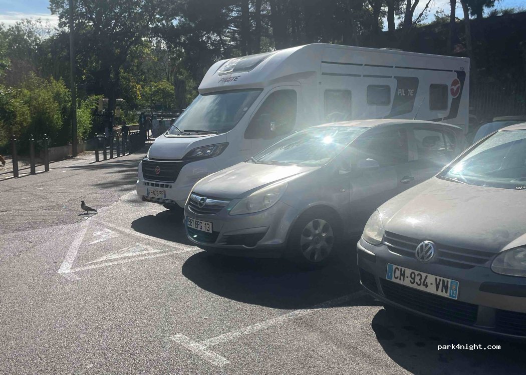Parking located next to Longchamp Park with access to the Cinq Avenue Longchamp metro station 5 minutes away by crossing it. Ideal for visiting the city and going down to the old port. Our camper van is 7m20 so it was not easy to park but the location allowed it...