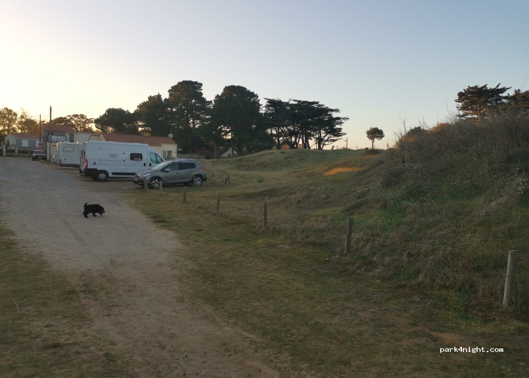 Petit parking autorisé hors saison, accès à pied à la plage à quelques mètre avec cabane à pêcheur, place pour 3 camping car, aucun service.
