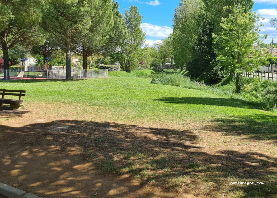 parking gratuit, dans un petit village, excellent pour stationner la nuit dans un petit parc avec une aire de jeu pour enfant et un magnifique bassin decoratif ....pas loin des remparts de carcassonne.