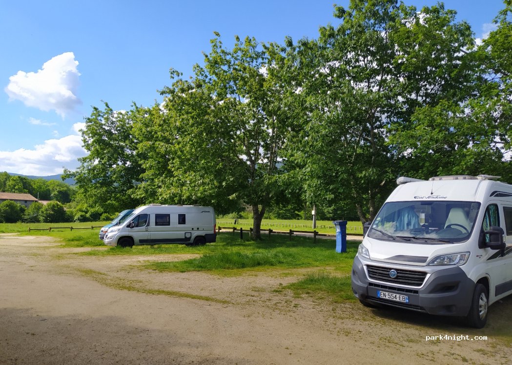 Merci à la municipalité pour cette petite aire charmante et tranquille . Possibilité de se baigner dans le petit lac . Un conseil trés bon restaurant tout à côté et pâtisserie au village , Pâtisserie d en bas , accueil très sympathique des deux établissements nommés . Merci à eux .
