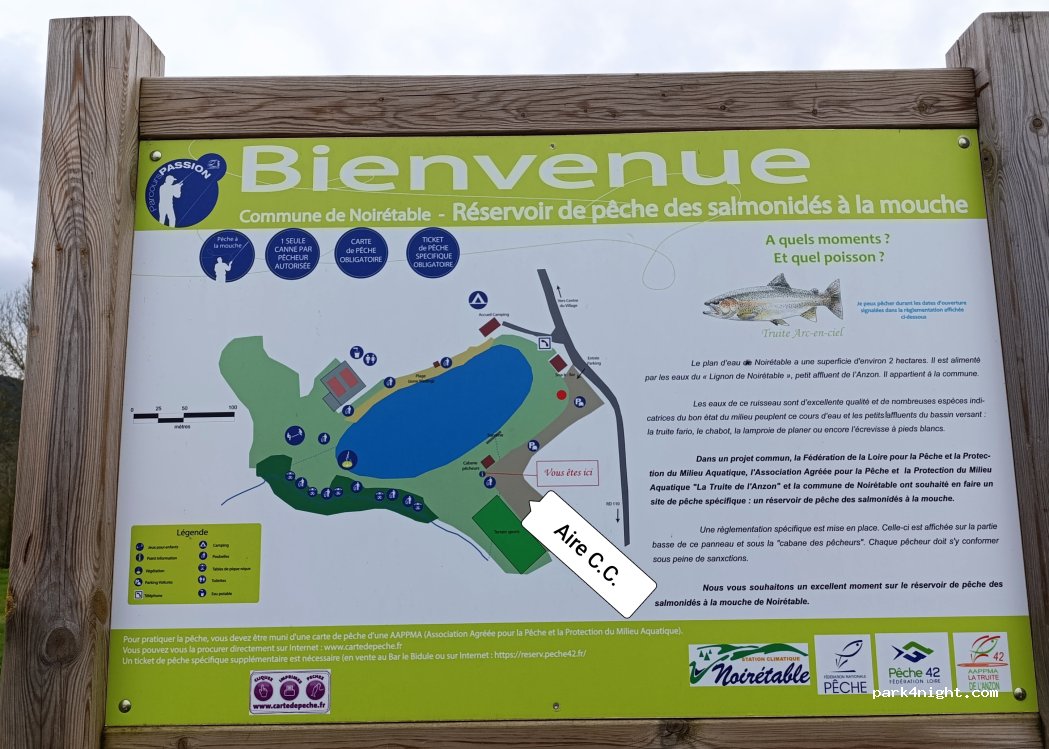 Aire au calme à proximité de l’étang de Noirétable, idéal pour les pêcheurs. Services possible, tout y est. Merci à la commune