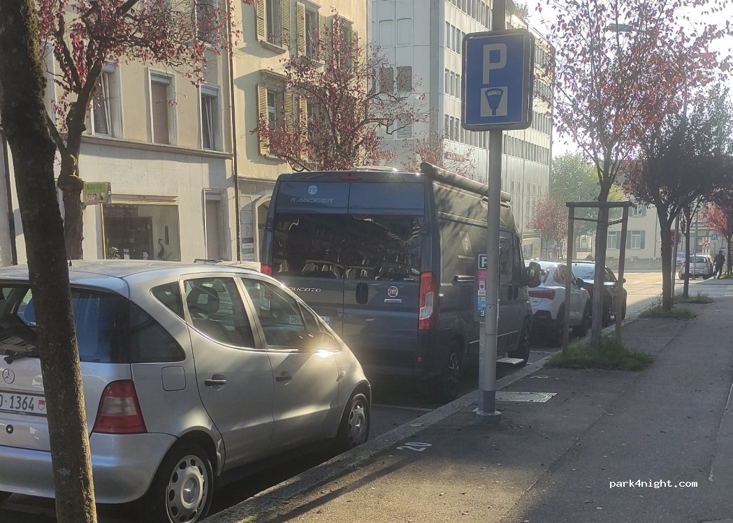 Place de parking dans la rue, à 100 m de la vieille ville. Payant.
