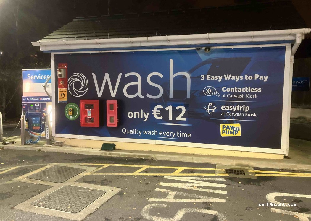 Maxol Auto24 fuel station. These have been our saving grace when trying to avoid expensive caravan parks. It has a car wash. It also has a free (albeit slow flow) water tap to refill your potable tank. These Auto24 stations are self service so you won’t have any attendants hassling you. Just fill up your fuel while you’re there to contribute to Maxol’s business and keep your conscience clear!