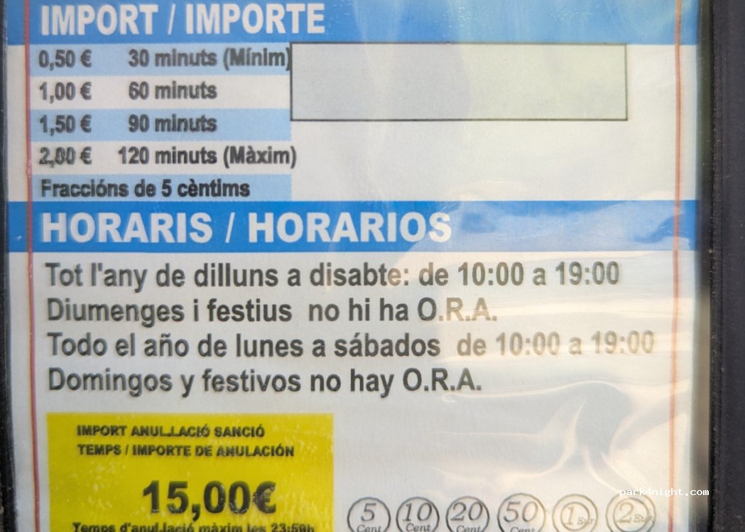 Pagado de 10 a 19 horas. Solo para furgoneta.