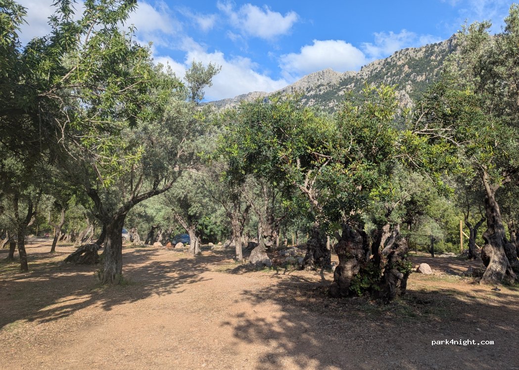 Von 19 Uhr bis 10 Uhr kann man hier kostenlos parken. Ich reise mit einem Van. Dafür ist der Platz perfekt, aber wenn man mit einem höheren und/oder breiteren Fahrzeug reist, ist der Ort ungeeignet. Es stehen überall Olivenbäume mit sehr tief hängenden Ästen. Der Parkplatz ist die ganze Nacht über beleuchtet.
