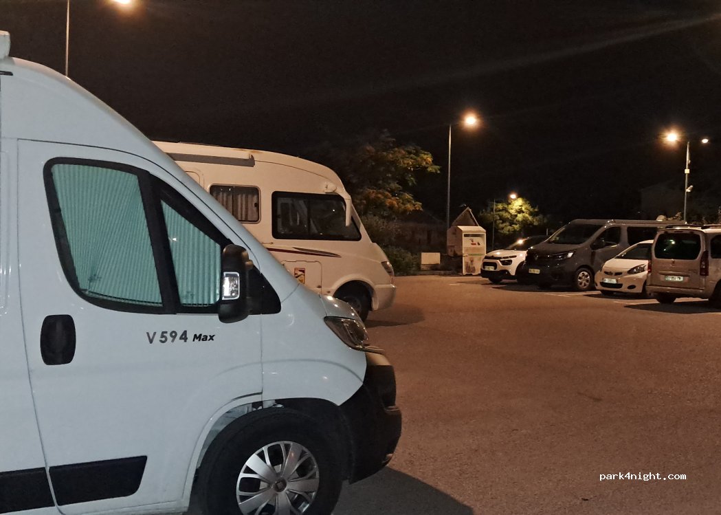 Parking dans la ville . un mur le sépare de la route .poubelle sur place .je m y suis stationné avec mon 8.40 ml .